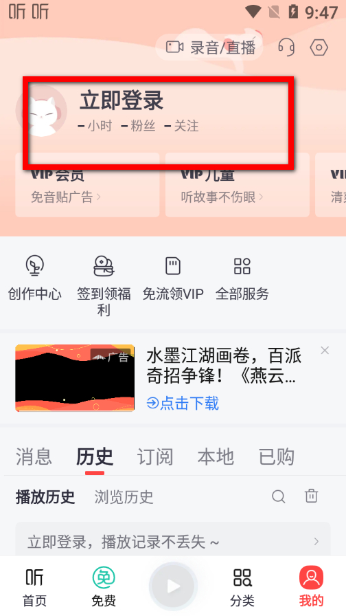 2、在個(gè)人中心界面,點(diǎn)擊立即登錄選項(xiàng),進(jìn)入登錄頁(yè)面。