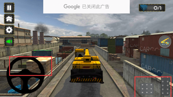 3、游戲中,左側(cè)方向盤控制吊車移動(dòng)方向,右側(cè)按鍵操作機(jī)械臂,在工業(yè)區(qū)場(chǎng)景完成吊裝等任務(wù),注意廣告關(guān)閉后繼續(xù)推進(jìn)。
