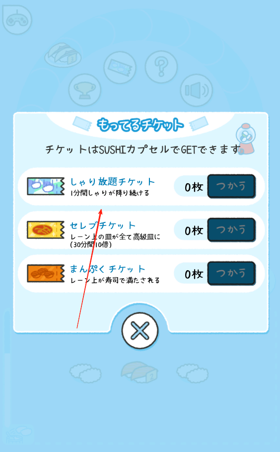 3、收集壽司膠囊獲取門票,用門票兌換特殊道具,如讓相同壽司持續(xù)掉落、升級餐碟等。