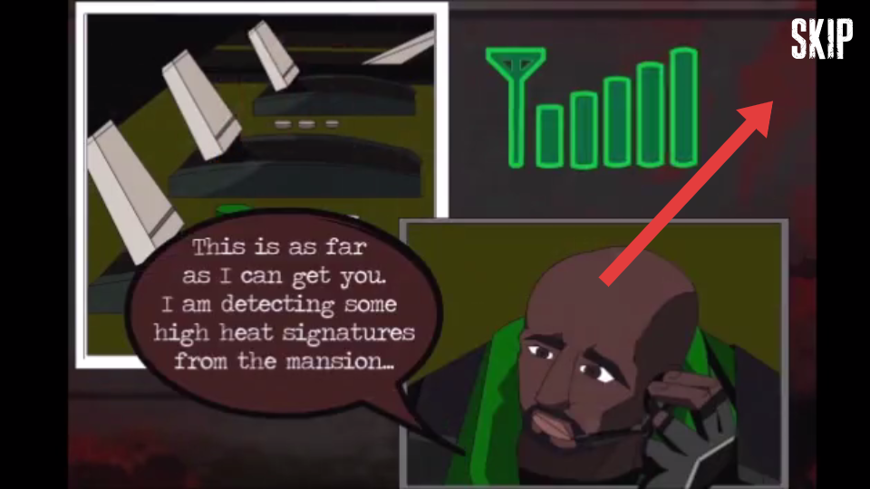 1、劇情界面時,可以下載點擊SKIP跳過略過對話,對話提示我只能送你到這兒了,我檢測到豪宅有強(qiáng)烈熱信號,借此了解任務(wù)背景。