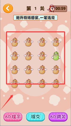 1、進(jìn)入關(guān)卡后先觀察所有圖形的分布位置,找出起點和終點可能的位置,特別留意那個不一樣的陷阱圖形。