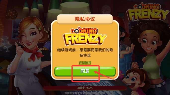 1、首次啟動(dòng)游戲時(shí),閱讀并確認(rèn)用戶協(xié)議后點(diǎn)擊"接受"繼續(xù)。