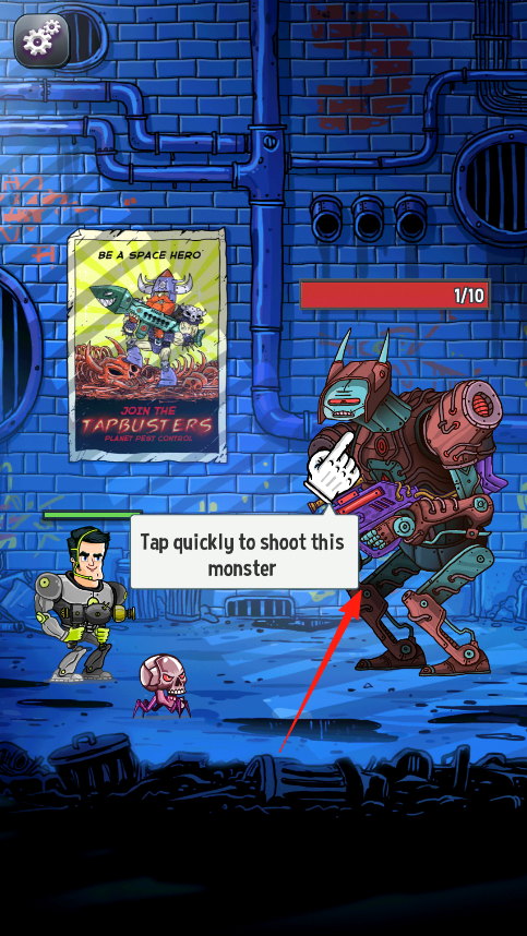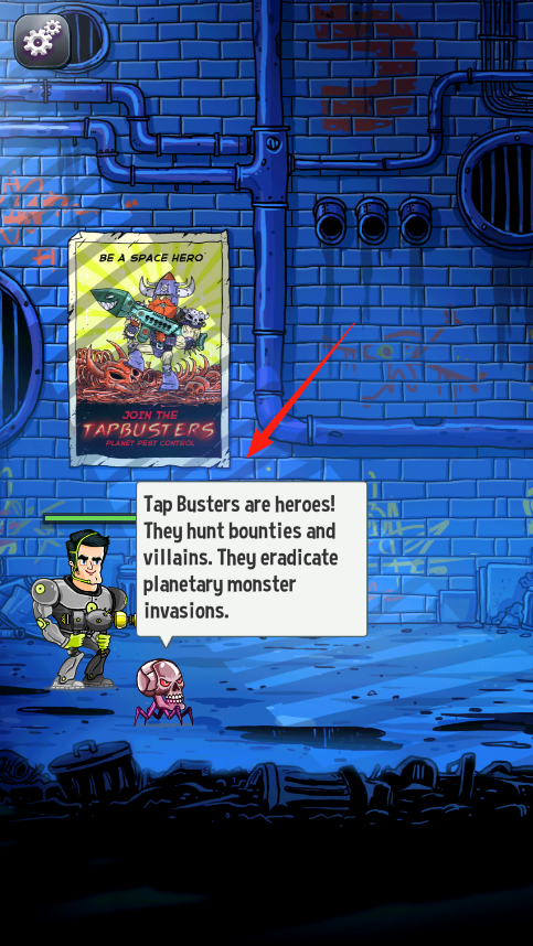 1、首先看到游戲里的介紹,了解到我們是英雄,會(huì)追捕懸賞目標(biāo)和反派,還能根除行星怪物入侵,接著就可以跟著劇情,開(kāi)啟作為Tap Busters成員的冒險(xiǎn)啦。