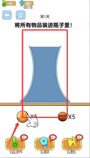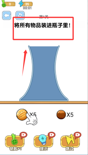 1、先看清楚每一關(guān)的目標和瓶子里液體的狀況,找到可以點擊或移動的地方。