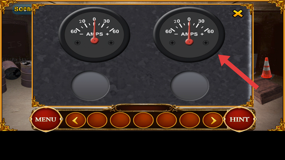 1、觀察兩個(gè)標(biāo)有AMPS的儀表,其指針均指向0,這是電力謎題的初始狀態(tài),需要后續(xù)調(diào)節(jié)數(shù)值以推動(dòng)機(jī)關(guān)解鎖。