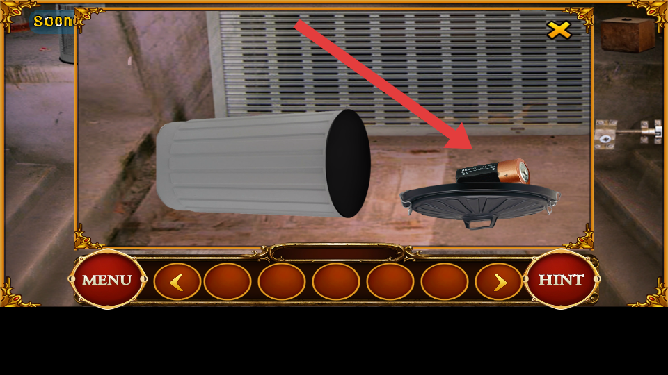 3、拾取垃圾桶旁的電池道具含黑色元件與銅電池,該物品可以激活電力設(shè)備,收集后關(guān)聯(lián)電力的謎題。