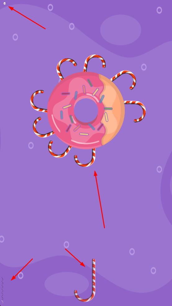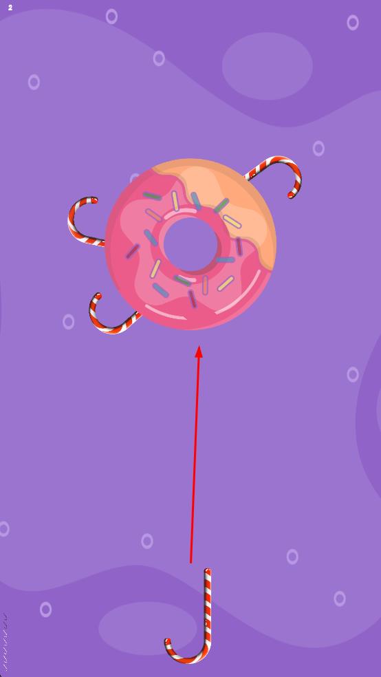 1、操控下方拐杖糖向上移動(dòng),吸附到粉色甜甜圈周圍,開啟收集挑戰(zhàn)。