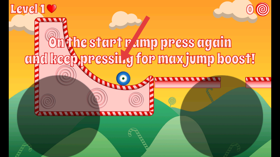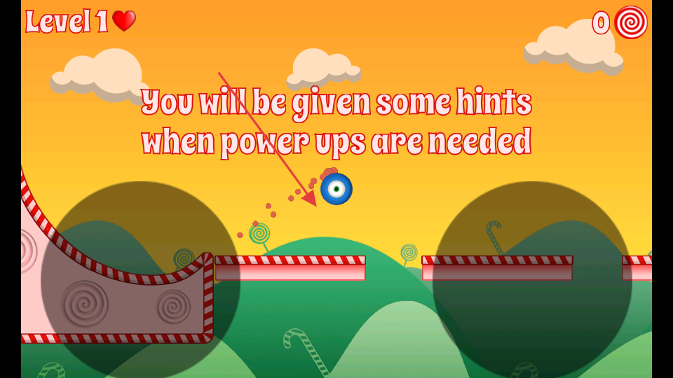3、遇缺口等需強(qiáng)化跳躍場(chǎng)景,留意提示hints when power ups are needed,重復(fù)長(zhǎng)按操作,完成關(guān)卡。