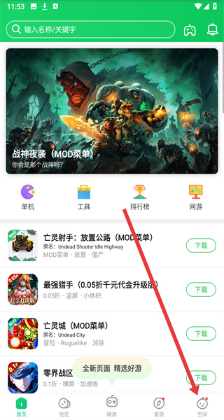 1、可以通過點擊葫蘆俠修改器首頁下的空間按鈕,進入我的空間。