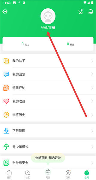 2、在進入到我的空間后,若未登錄可以點擊上方登錄按鈕,進行登錄操作。