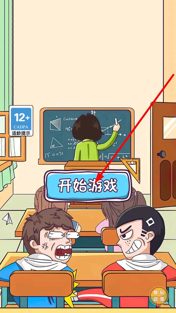 1、進入游戲初始界面,點擊開始游戲,開啟校園主題解謎冒險,體驗趣味關(guān)卡挑戰(zhàn),鍛煉思維能力。