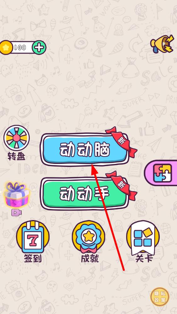 2、在模式選擇頁,選動動腦,進入腦力挑戰(zhàn)關(guān)卡,通過解謎、答題等玩法,推進游戲,解鎖新內(nèi)容。