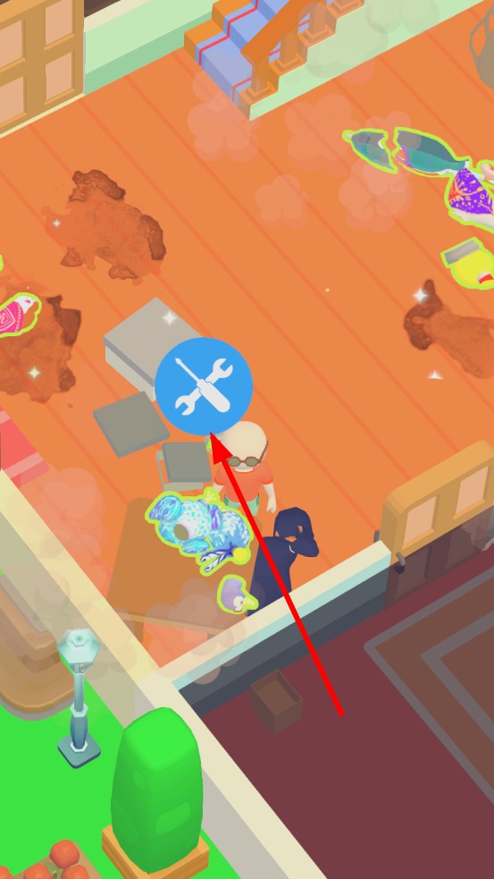 1、進入關卡,點擊扳手標識的工具圖標觸發(fā)修復流程,按提示完成基礎修復,解鎖裝飾階段。