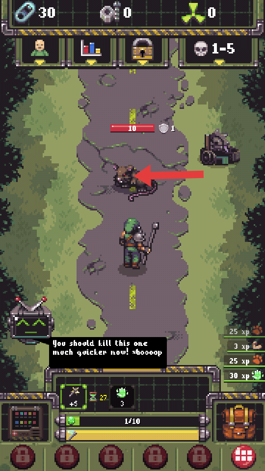 2、英雄與裝備升級:通過點擊攻擊怪物獲取戰(zhàn)利品與財富,用這些資源提升英雄等級,解鎖更強戰(zhàn)斗能力;同時收集材料制作抗輻射裝甲、新的閑置武器,提升裝備等級。