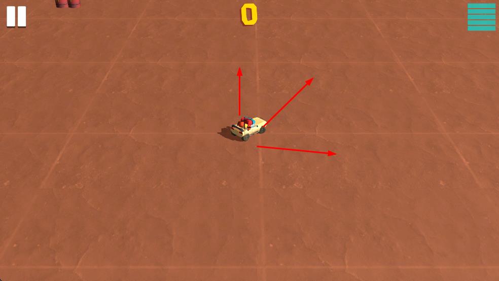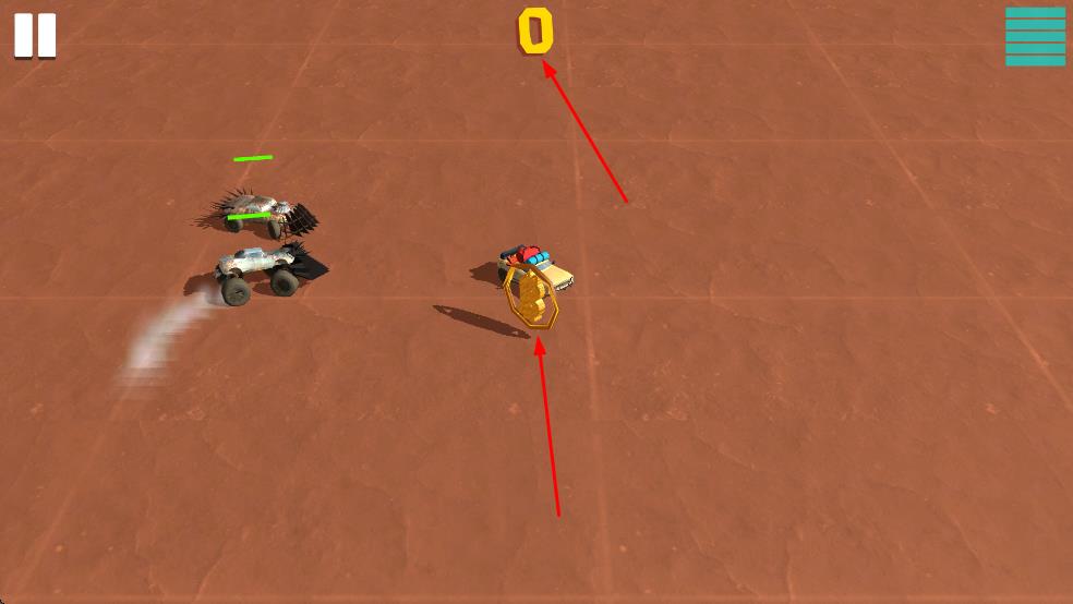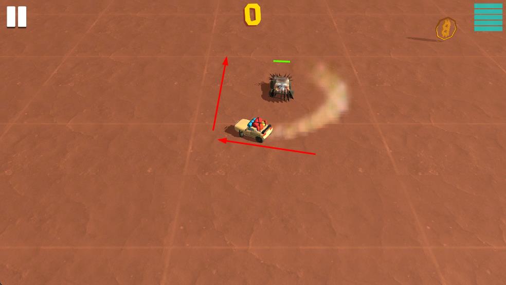 1、操控黃色賽車在荒漠場地移動,躲避敵方車輛的撞擊。