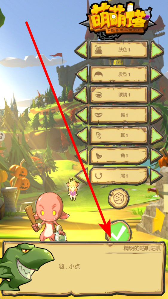 1、進入游戲,在捏臉界面調整小怪獸膚色發(fā)型等7類細節(jié),搭配出獨特外觀,點擊下方綠色對勾確認,完成角色個性化定制,開啟冒險第一步。