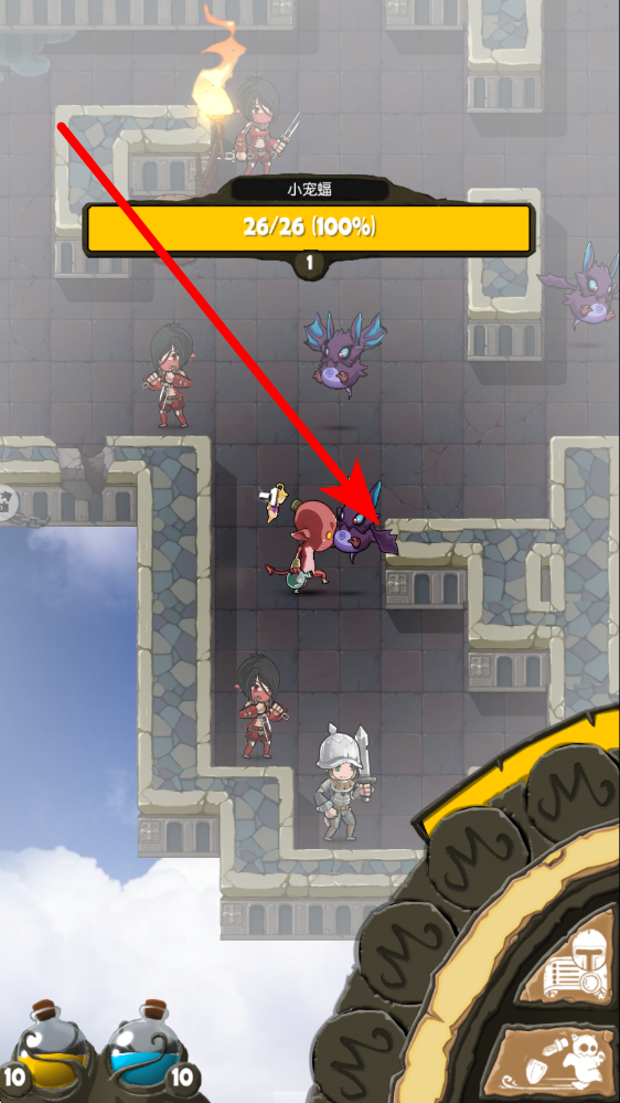 3、進入高塔場景,控制小怪獸與敵人戰(zhàn)斗,探索隨機生成的關卡,遭遇小寵蝠等敵人,通過戰(zhàn)斗推進,解鎖新區(qū)域,開啟冒險之旅。