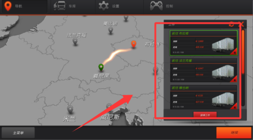 1、開始游戲后先接一個短途運輸任務(wù)練手,熟悉油門、剎車和方向盤的操作感覺,同時注意看地圖導(dǎo)航,避免開錯路。