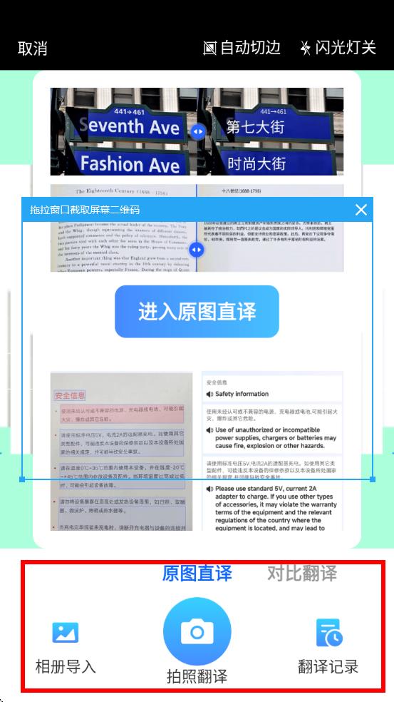 2、界面中點(diǎn)擊【原圖直譯】欄的【相冊(cè)導(dǎo)入】拍照翻譯,選翻譯模式,獲取圖片文字翻譯結(jié)果。