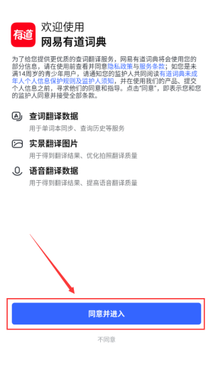 1、點擊紅框同意并進入按鈕,確認隱私政策條款。