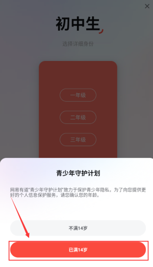 3、點擊紅框已滿14歲按鈕,完成年齡驗證。