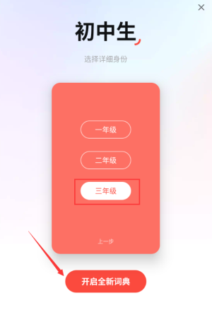4、選擇紅框三年級選項,點擊開啟全新詞典。
