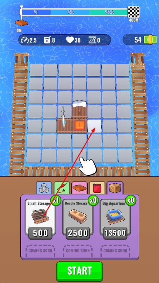 1、進(jìn)入游戲后登上木筏,整理基礎(chǔ)漁具,選擇合適的魚(yú)餌掛在魚(yú)鉤上,對(duì)準(zhǔn)海面拋出魚(yú)線,開(kāi)始首次海上垂釣體驗(yàn)。