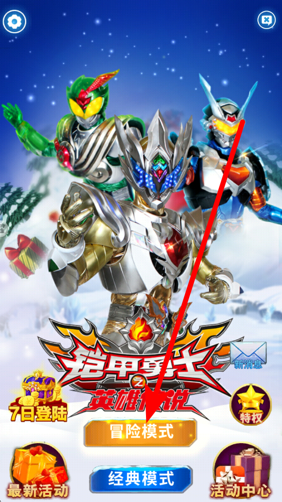 1、點擊進入游戲,在模式界面選冒險或經典模式,冒險模式偏重劇情推進,經典模式聚焦操作考驗,選定后開啟鎧甲勇士的闖關征程。