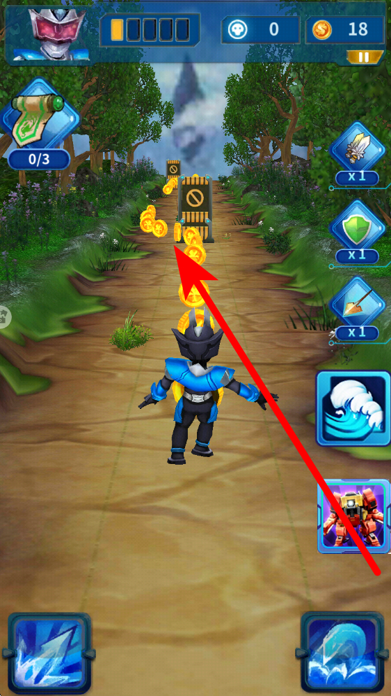 2、進入跑酷場景,操控角色沿路徑前行,緊盯地面金幣全力收集,同時關注兩側道具,如護盾、攻擊道具等,拾取可提升生存與戰(zhàn)斗能力。