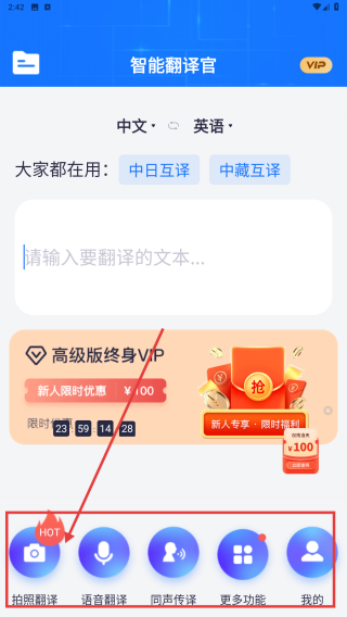 1、選擇翻譯方式:根據(jù)需求選擇文字、語音或拍照翻譯,例如輸入文字即可獲得對應(yīng)譯文,說出內(nèi)容則實時轉(zhuǎn)換翻譯,拍下外文圖片。