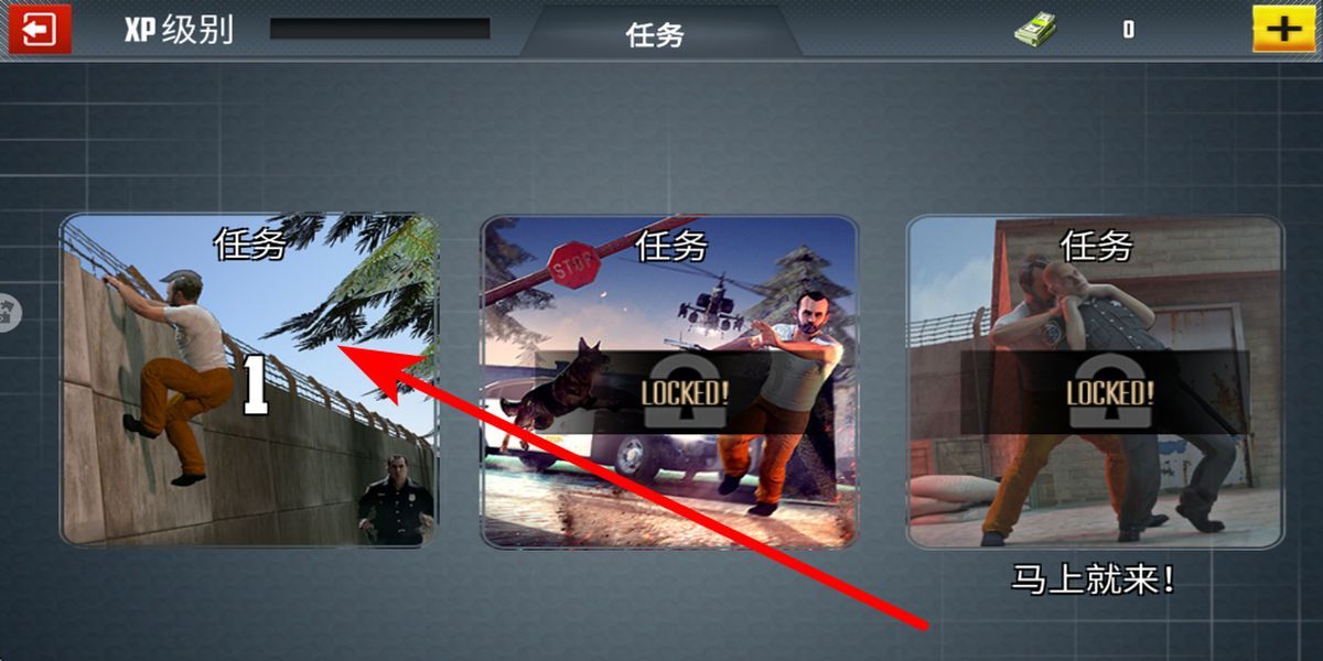 1、進入主界面后點擊開始游戲,在任務(wù)列表挑選已開啟的任務(wù),不同任務(wù)對應(yīng)著各異的越獄場景與專屬挑戰(zhàn),選定后進入監(jiān)獄環(huán)境,正式開啟刺激的逃脫之旅。