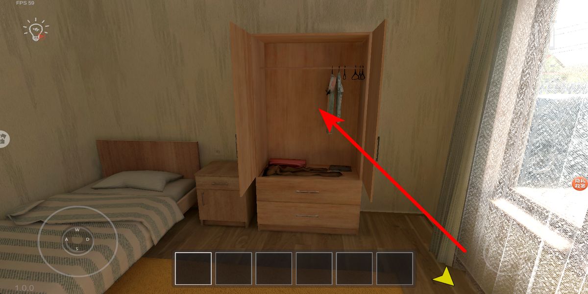 2、衣柜搜查線索打開房間內的衣柜,查看掛架上的衣物,點擊互動排查隱藏道具,再檢查衣柜下方的抽屜與疊放衣物,尋找鑰匙或解謎相關的提示內容。