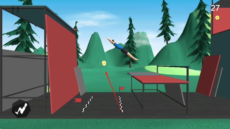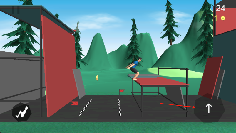 3、看到金幣位置后,提前規(guī)劃跳躍路線,先點(diǎn)擊向上箭頭按鈕起跳,在空中合適時(shí)機(jī)點(diǎn)擊特殊動(dòng)作按鈕,精準(zhǔn)地朝著金幣方向跳躍,獲取金幣并提升分?jǐn)?shù)。