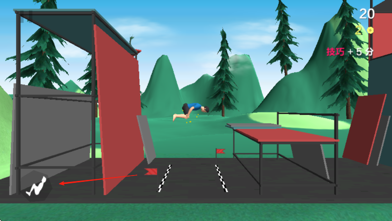 2、發(fā)現(xiàn)角色在空中時(shí),留意左下角紅箭頭所指的特殊動(dòng)作按鈕,點(diǎn)擊它可以做出特定的跳躍動(dòng)作,幫助角色調(diào)整方向和姿態(tài),以便更好地收集金幣。