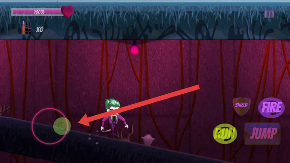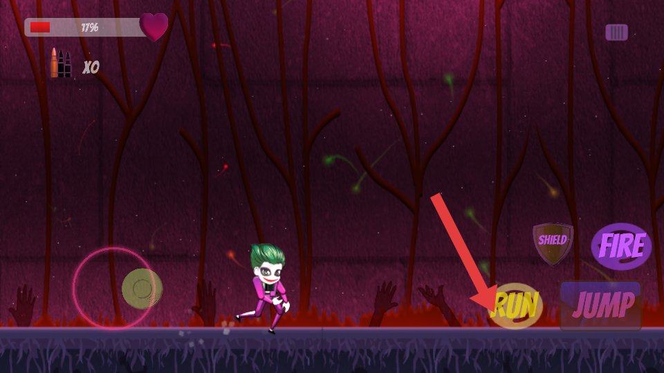 1、進(jìn)入關(guān)卡,點(diǎn)擊右側(cè)RUN加速,遇到坡路順勢(shì)下滑,注意上方的藤蔓,別被阻礙拖慢了節(jié)奏。