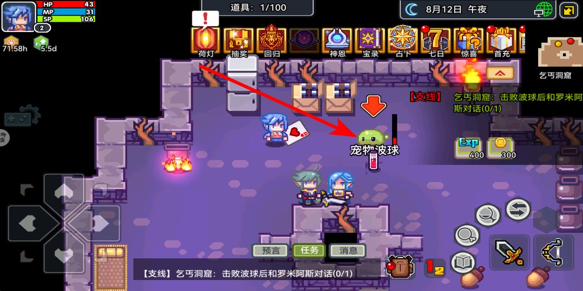 2、初期任務(wù)推進(jìn)進(jìn)入乞丐洞窟,跟隨支線任務(wù)擊敗寵物波球,留意角色血量與戰(zhàn)斗節(jié)奏,利用普攻或初始技能輸出,勝利后與羅米阿斯對話,解鎖冒險(xiǎn)指引。
