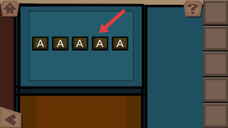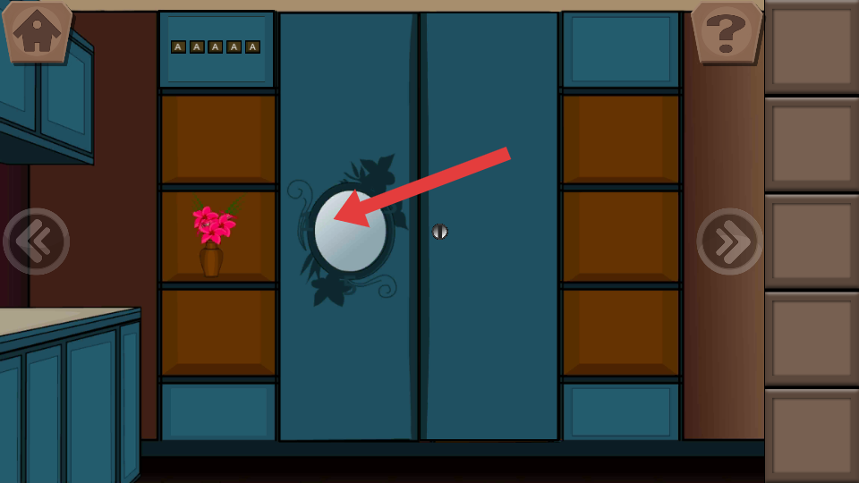 2、聚焦5個(gè)A密碼鎖,聯(lián)想場(chǎng)景對(duì)稱如柜子鏡像,嘗試字母替換或數(shù)量來關(guān)聯(lián),解鎖柜子。