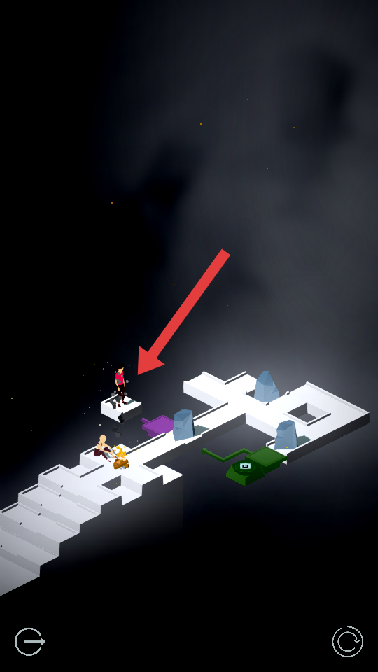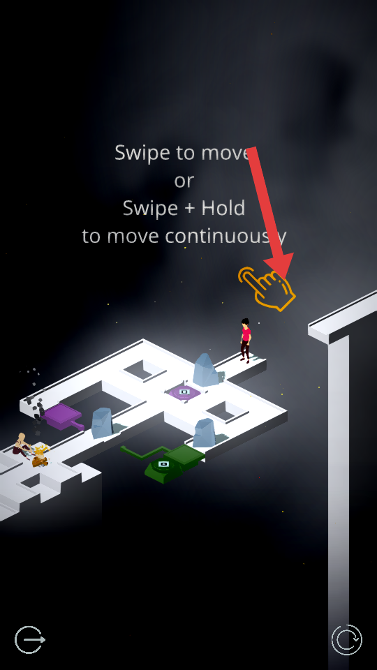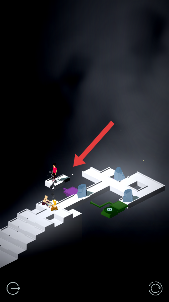 1、滑動屏幕控制紅衣角色移動,遇階梯滑動搖桿向上攀爬;靠近石塊可嘗試推動、利用其搭建路徑。