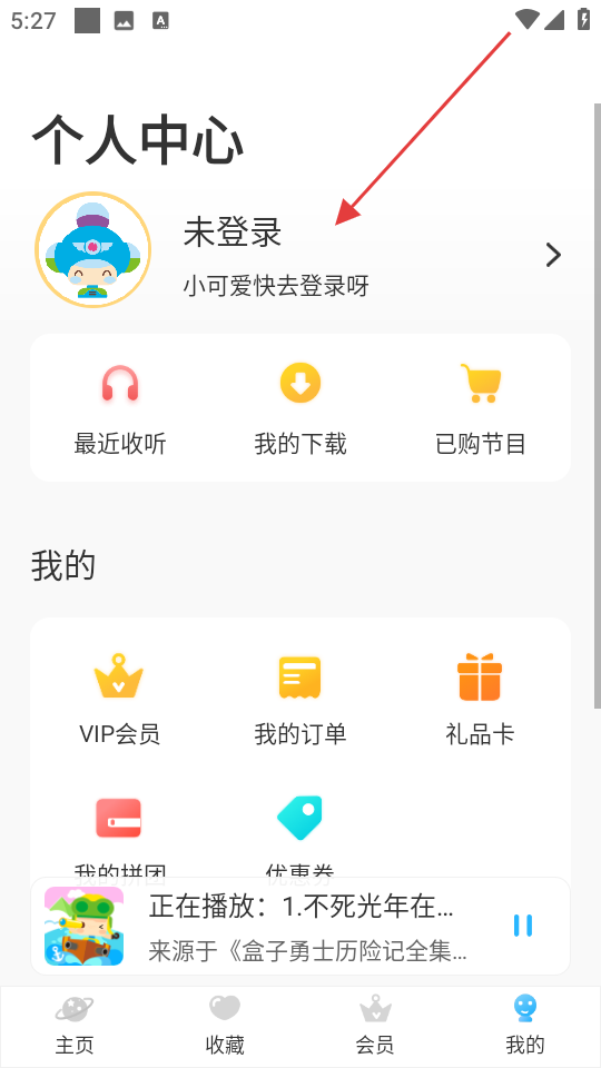 2、在個(gè)人中心點(diǎn)擊未登錄,進(jìn)入登錄選擇頁。