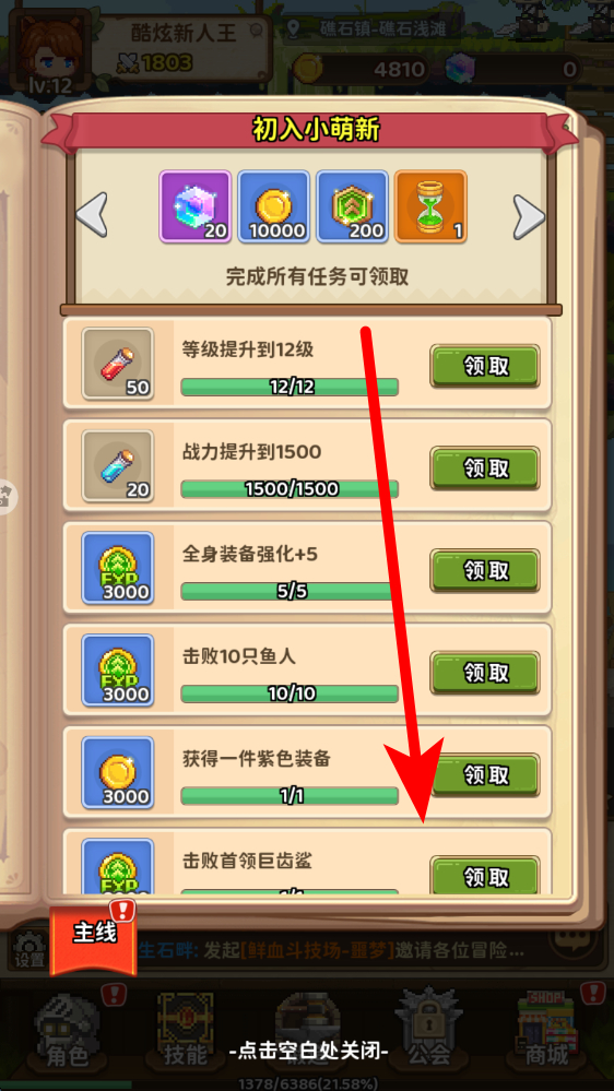 3、完成了對應(yīng)的成長任務(wù)后,打開任務(wù)獎(jiǎng)勵(lì)界面,領(lǐng)取等級、戰(zhàn)力等達(dá)標(biāo)的獎(jiǎng)勵(lì),用于強(qiáng)化角色的裝備,助力后續(xù)冒險(xiǎn)旅途挑戰(zhàn)。