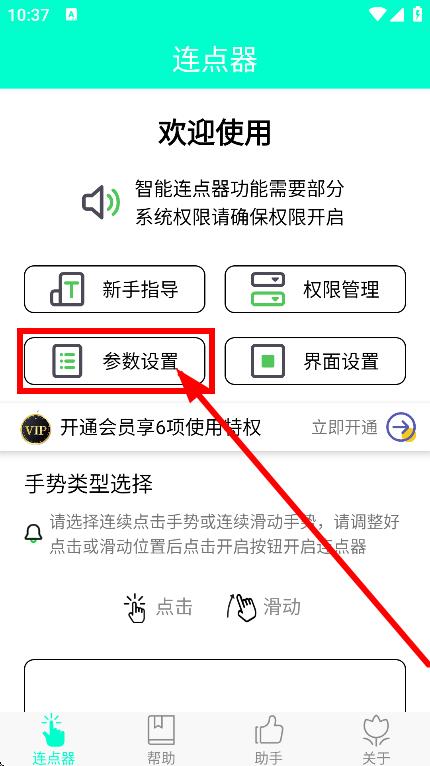 1、在智能連點(diǎn)器界面,點(diǎn)擊參數(shù)設(shè)置,進(jìn)入?yún)?shù)設(shè)置頁(yè)面。