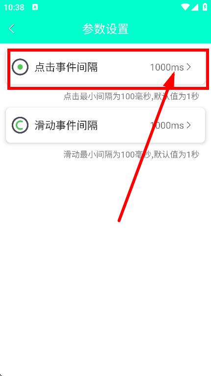 2、在參數(shù)設(shè)置頁(yè)面,點(diǎn)擊事件間隔,彈出時(shí)間間隔設(shè)置框。
