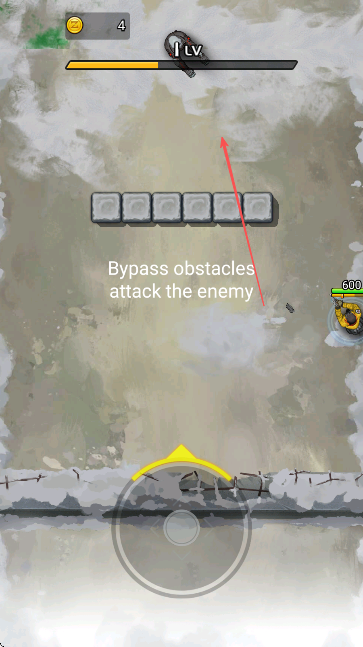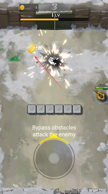 2、遇石塊障礙物、按Bypass obstacles attack the enemy提示、操控?fù)u桿繞開障礙繼續(xù)攻擊敵人。