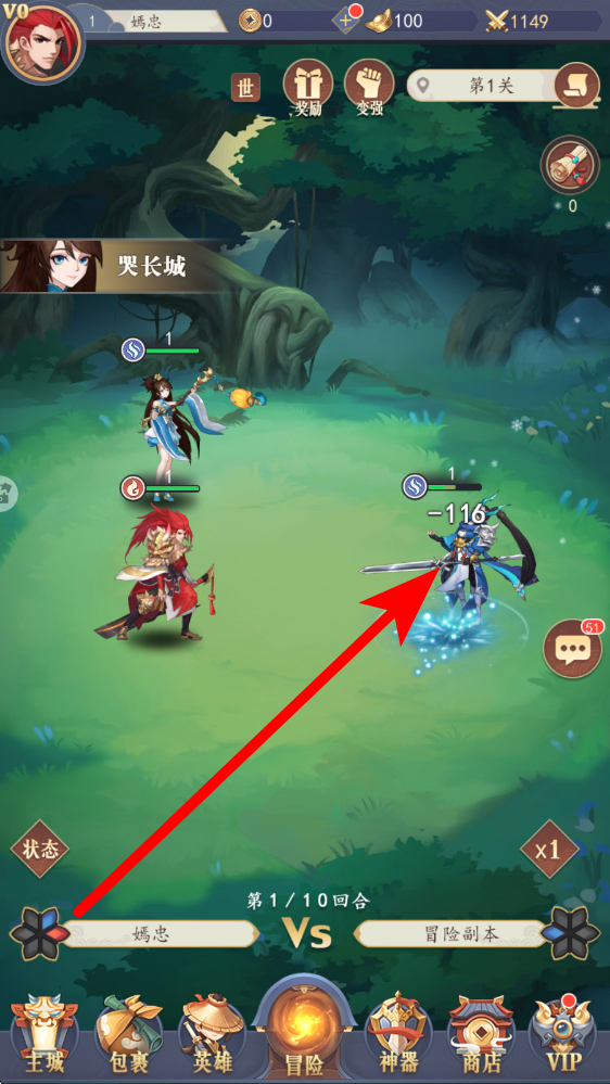 3、進入冒險關卡,選擇第1關等低難度副本,英雄自動戰(zhàn)斗,通過與敵人交鋒積累經(jīng)驗、資源,推進游戲進程,熟悉戰(zhàn)斗機制。