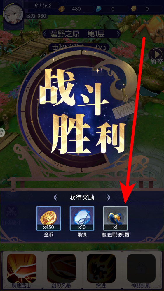 3、成功的戰(zhàn)勝敵人后,彈出獎勵界面顯示獲得金幣、隕鐵、裝備等領(lǐng)取獎勵,要及時領(lǐng)取用于角色養(yǎng)成,提升戰(zhàn)力以應(yīng)對后續(xù)挑戰(zhàn)。