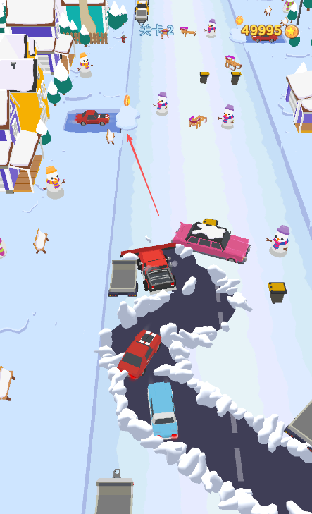 2、駕駛清障車在積雪路段行駛,通過移動清障車推開積雪,讓被困汽車擺脫阻礙,同時收集金幣。