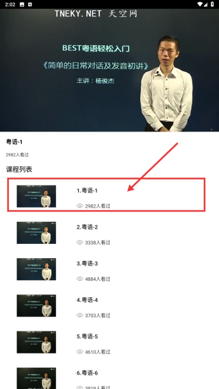3、在課程詳情頁(yè)的課程列表里,點(diǎn)擊粵語(yǔ)-1課程,開(kāi)始學(xué)習(xí)該內(nèi)容。