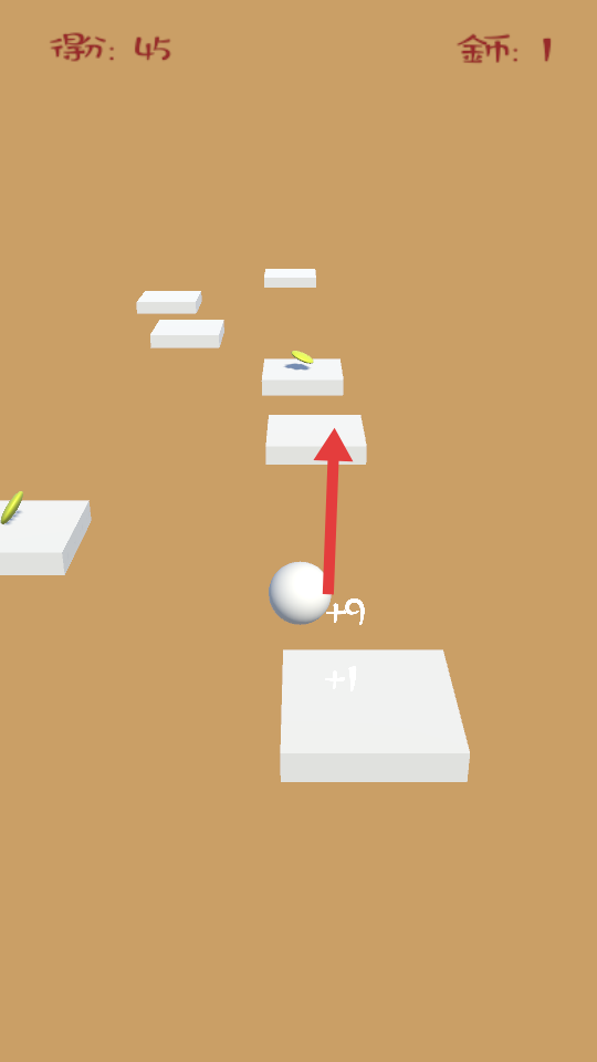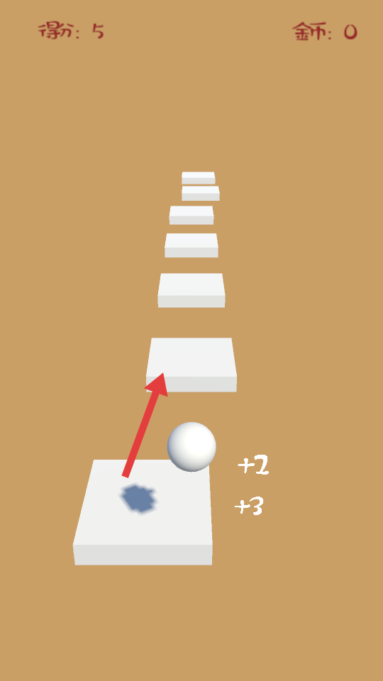 2、通過滑動(dòng)屏幕控制跳躍方向,向左滑動(dòng)小球?qū)⑾蜃筇?,向右滑?dòng)則向右跳,滑動(dòng)幅度無需過大,輕滑即可調(diào)整方向,重點(diǎn)是根據(jù)前方方塊的橫向位置。