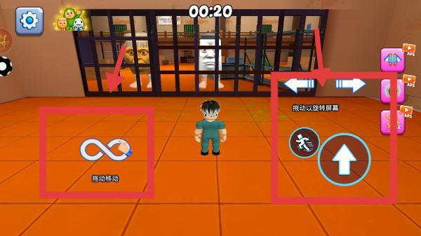 1、開局先熟悉操作,通過【拖動移動】控制角色,用【拖動以旋轉(zhuǎn)屏幕】調(diào)整視角,注意時間【00:20】內(nèi)的行動。