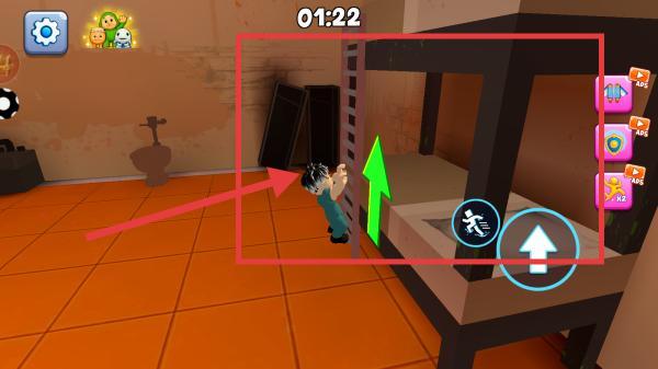 2、遇到梯子時,操控角色靠近并向上攀爬,利用【綠色箭頭】指引,抓緊時間【01:22】推進(jìn)流程。